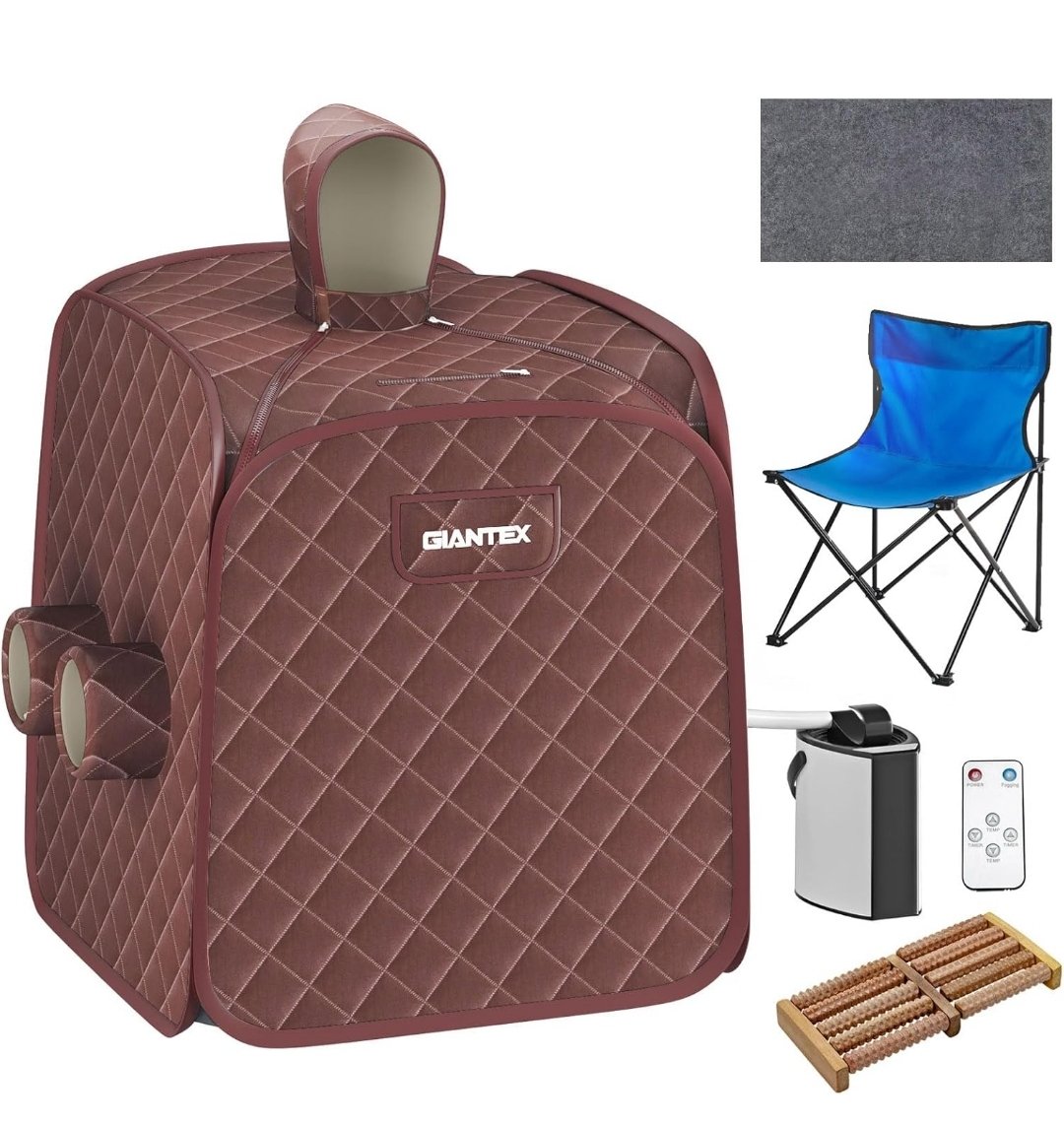 Giantex Portable Folding Sauna, 1 or 2 Person Steam Spa with Remote Control, Folding Chair, Foot Massage Roller, Absorbent Mat, 9 Temperature Levels, 3L Steamer, 800W Home Full Body Spa Tent (Brown